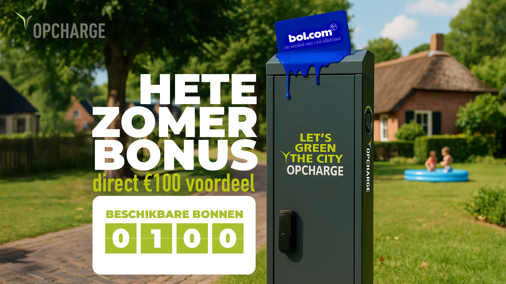This summer, not only will you make your neighborhood greener, but you will make yourself happy too. Apply now for a free public charging station through Opcharge. Once your application is approved and the charging station is installed, you will receive a gift certificate worth €100 from us .